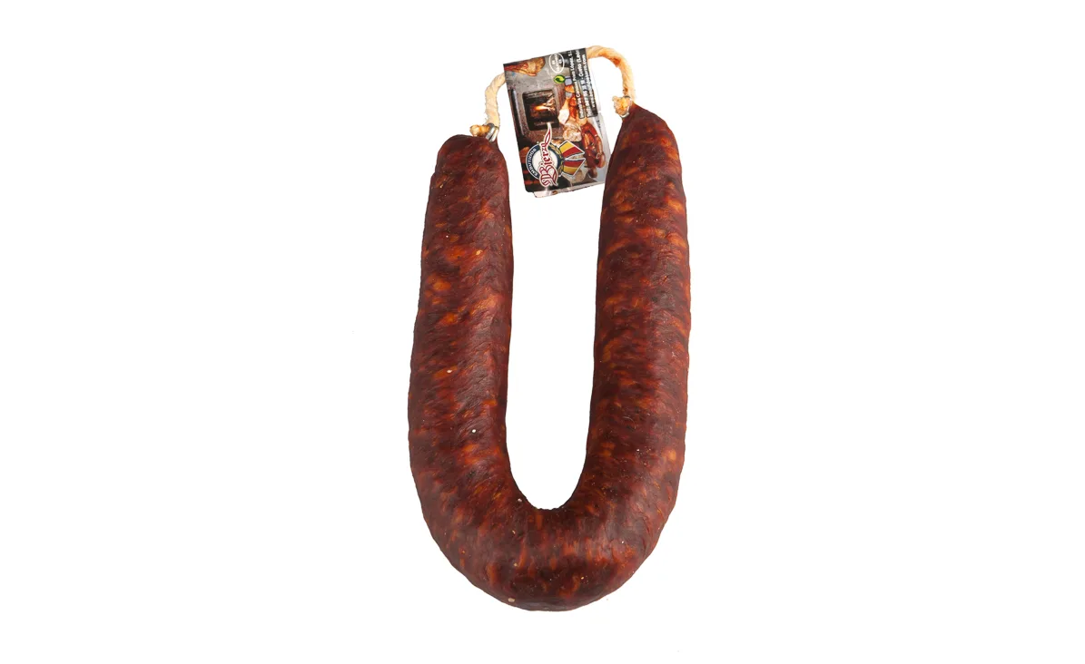 Chorizo en forma de herradura, curado y ahumado. Embutido tradicional disponible en dulce y picante.